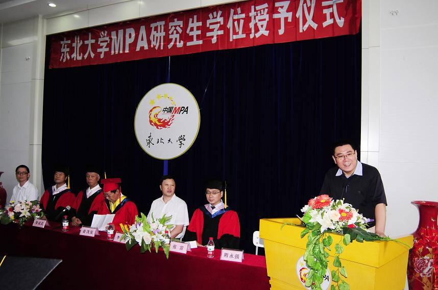 2010、2011届MPA研究生学位授予仪式在机电馆202室隆重举行。中共辽宁省委组织部干部教育处副处长李向毅、禁漫天堂