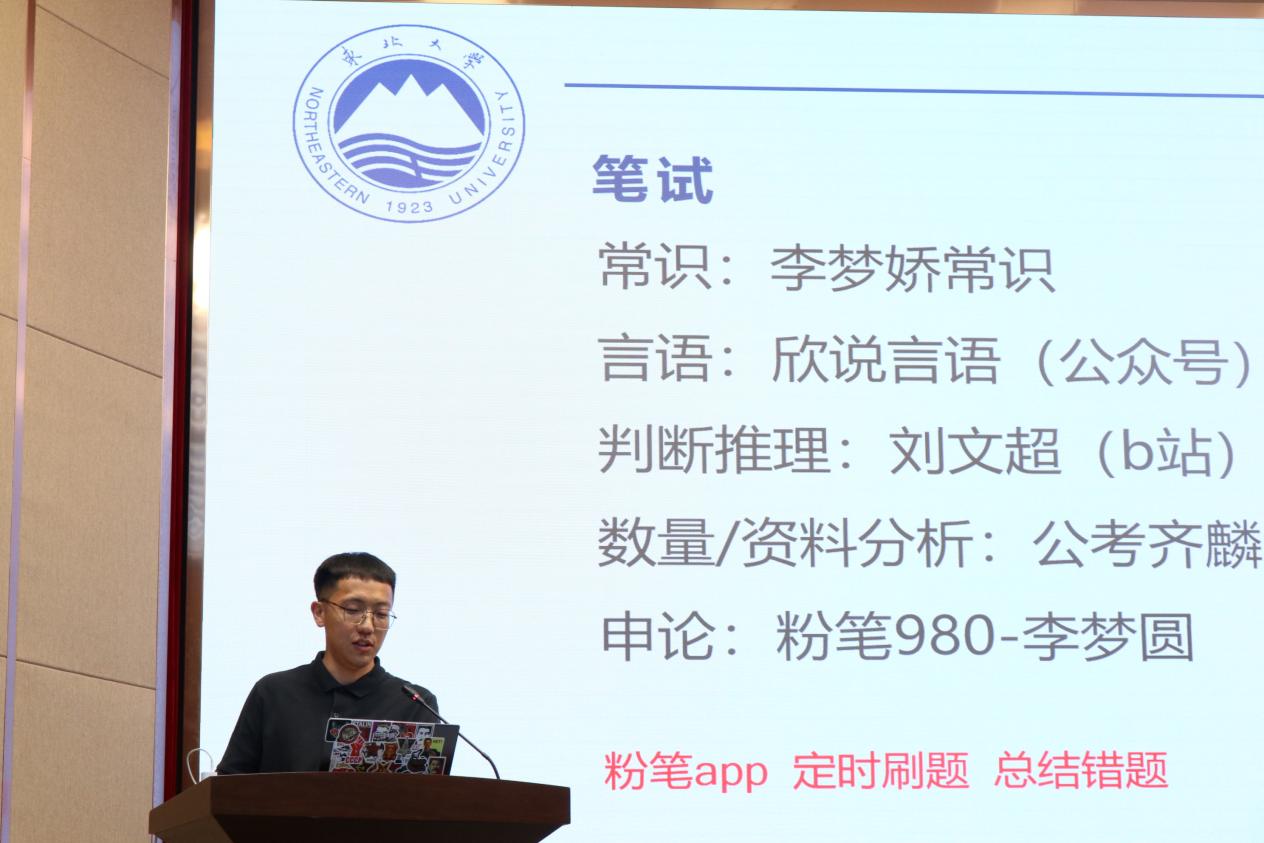 孙一凡重点讲解了如何确定是否考公,如何科学选择岗位、如何平衡考公与毕业论文、如何备考国考与事业编考试。李怡霄从考公经历、省考报名、笔试备考和面试备考四个方面分享自己省考上岸经验。朱鑫从何为定向选调、定向选调备考和定向选调选岗三大方面介绍了考公上岸的心路历程。杨旭东从收集考试信息、做好笔试面试、摆正考公心态等方面分享自己的备考过程。
