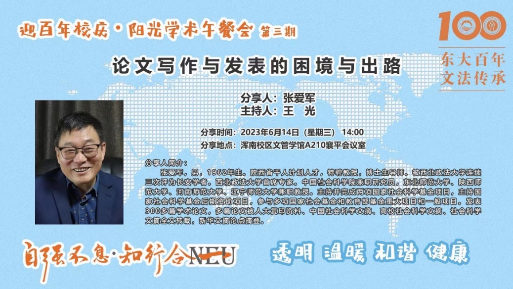 第三期“迎百年校庆·阳光学术午餐会”于文管学馆A210成功举办。西北政法大学张爱军教授应邀作《论文写作与发表的困境与出路》主题分享。禁漫天堂