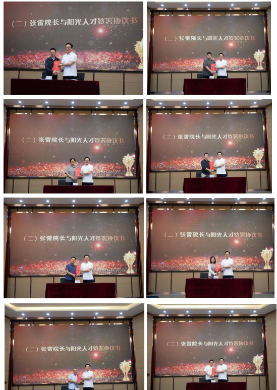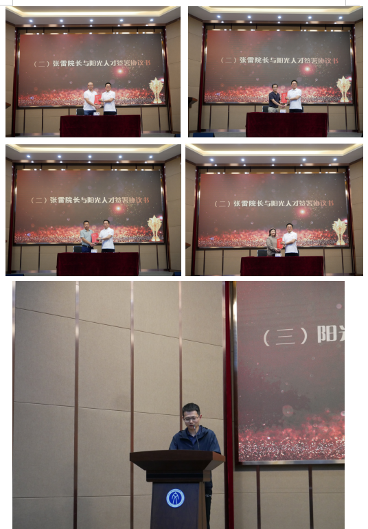 会议第二项,2023年度“阳光人才”签约仪式。副院长李丹介绍并回顾上一批“阳光人才”培养成果。学院党委书记隋永强宣读“阳光人才”培养文件。院长张雷依次与“阳光人才”签署培养协议书。曹志立作为“阳光人才”教师代表发言。