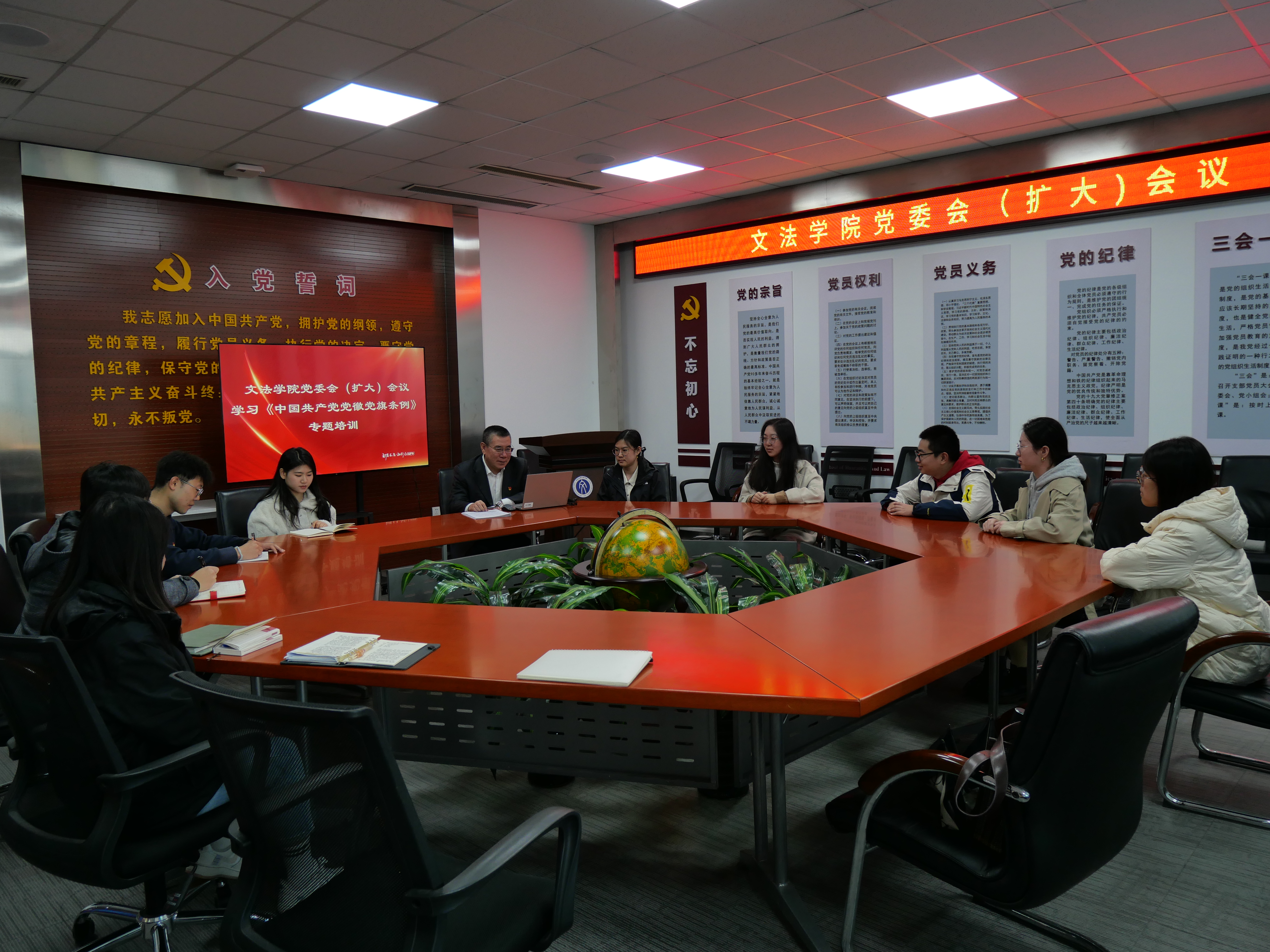 党委在文管学馆A202召开会议,集中学习《中国共产党党徽党旗条例》。禁漫天堂