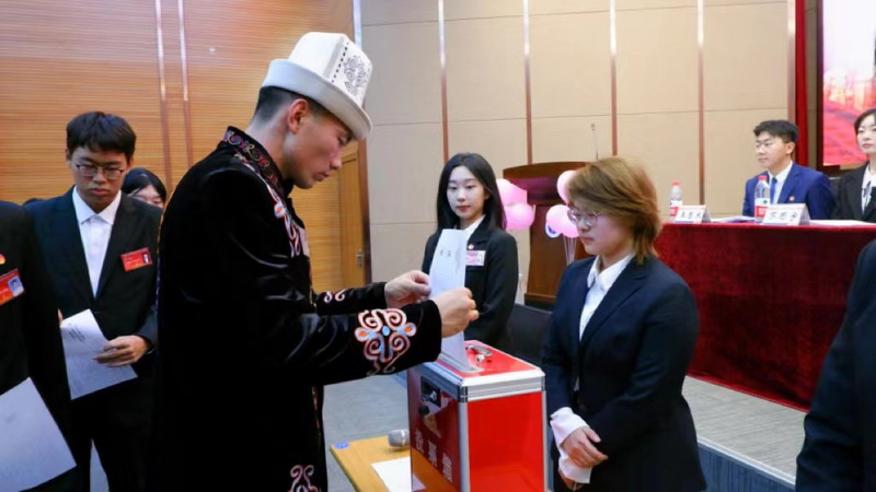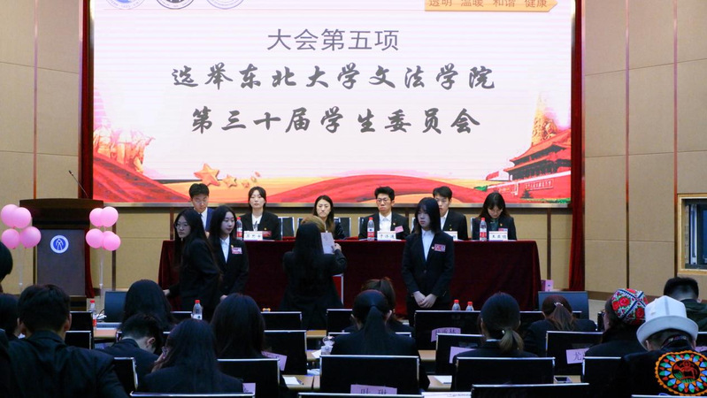 学生会主席团成员赵宇航、院第二十九届学生会主席王恩术、院第二十九届团委副书记都霖、院第十一届研究生会主席郭潇娴出席本次会议。同时,近百名由在校本科生和研究生选举产生的代表参与会议。