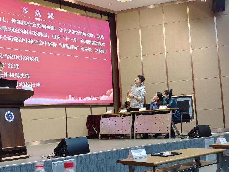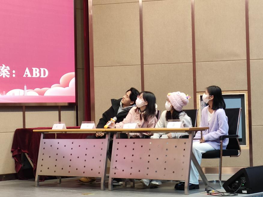 第二场为复赛和决赛。经过前期的激烈角逐,成功晋级的十一支队伍进行复赛及决赛。本场增设功能卡与多轮积分等项目,决赛设置共渡险关、争分夺秒、知识陷阱三个环节,各队成员合理分工,睿智作答,不断赢得现场同学阵阵掌声。