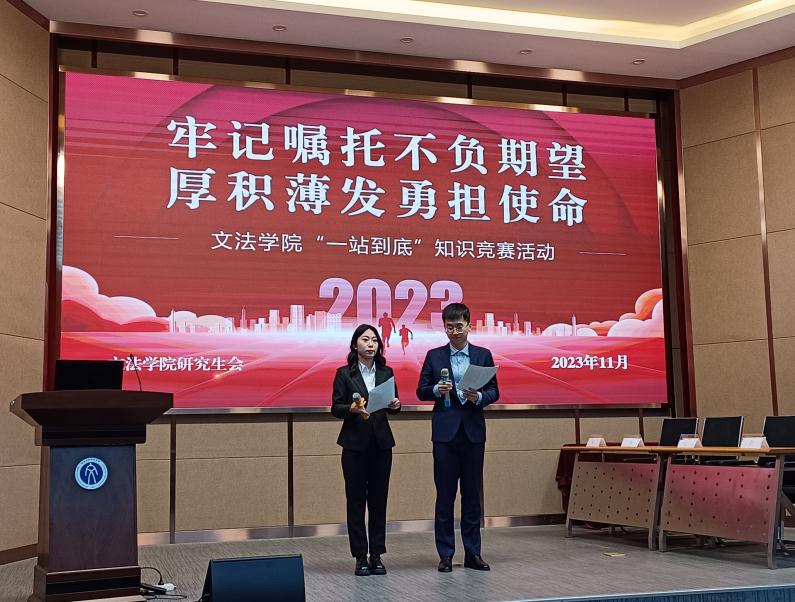 “牢记嘱托不负期望,厚积薄发勇担使命”研究生知识竞赛于文管学馆B230室成功举办。本次知识竞赛包括党史、团史、校史、院史、时事要闻和百科知识等内容,分为初赛、复活赛、复赛以及决赛四个环节,分两场进行,共十六支队伍参加比赛。