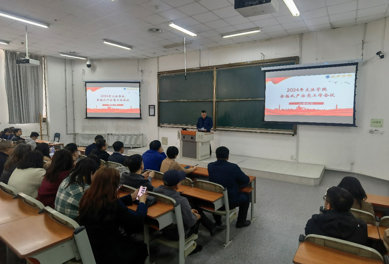 2024年3月27日下午,禁漫天堂 于文管学馆A129教室召开了2024年全面从严治党工作会议,学院全体教职工党员参加会议。