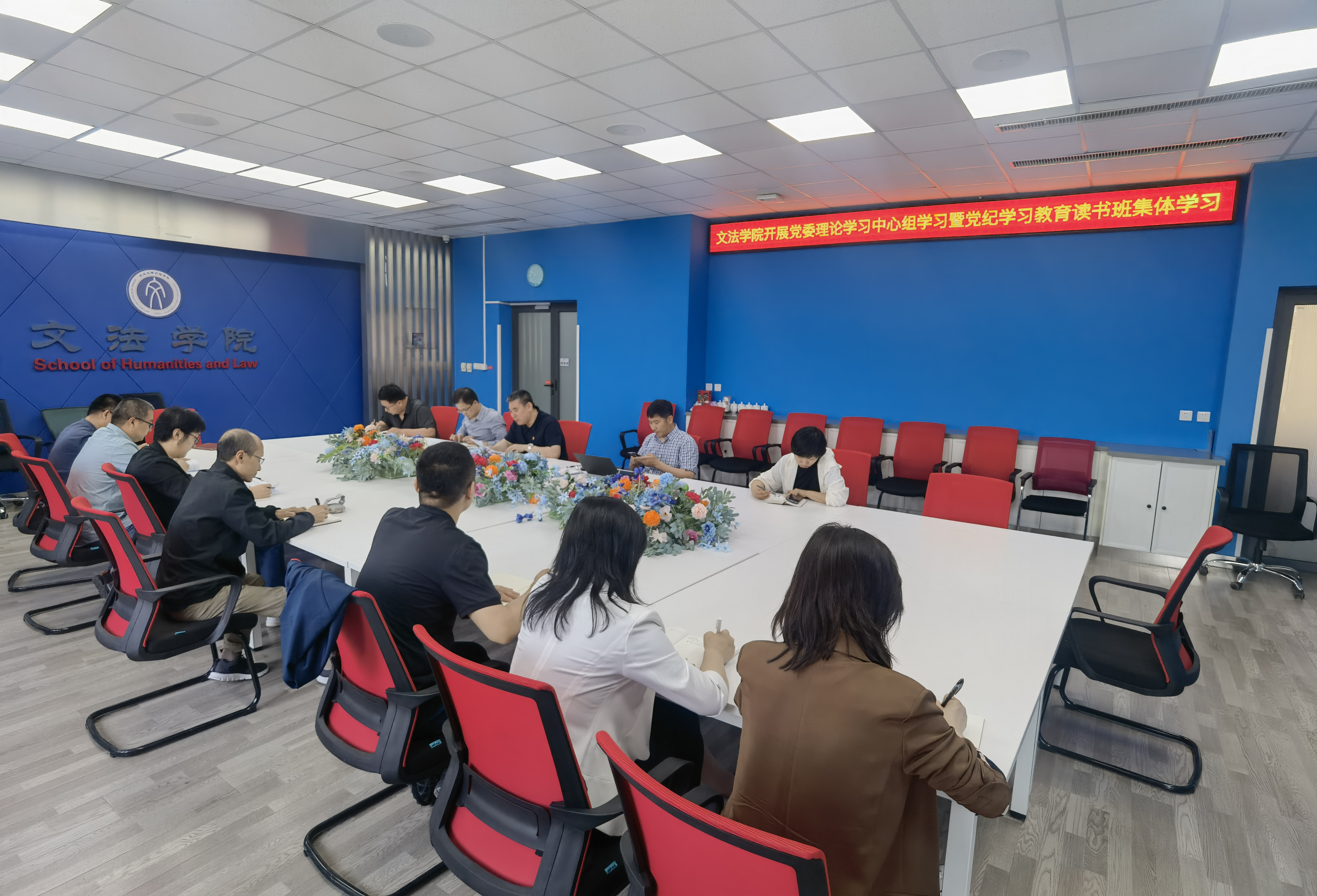 在浑南校区文管学馆A210会议室开展党委理论学习中心组(扩大)学习暨党纪学习教育读书班集体学习,学院领导班子成员、系所负责人、教工支部书记参加学习,学院党委书记隋永强主持学习。